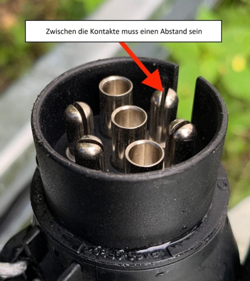 Wenn du Probleme mit dem 7-poligen Stecker hast, kann dies daran liegen, dass die Kontakte zu nah beieinander gedrückt wurden. Du kannst diese wieder vorsichtig auseinanderdrücken.