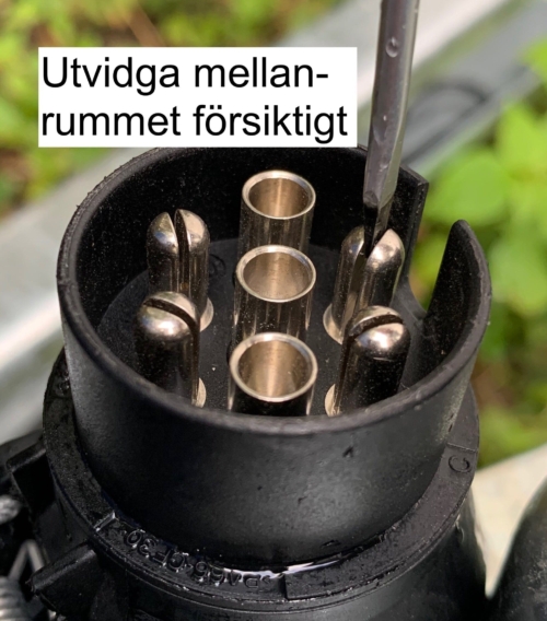 Om du har problem med att få alla lampor att lysa när du använder dig av den 7-poliga adaptern kan orsaken vara att de fyra hankontakterna har tryckts ihop för nära varandra. Du kan då försiktigt prova att separera dem då det gör det enklare att koppla in adaptern i bilens uttag.